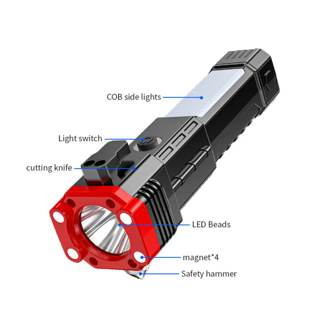 High-Brightness LED Flashlight | Power Bank & Safety Hammer