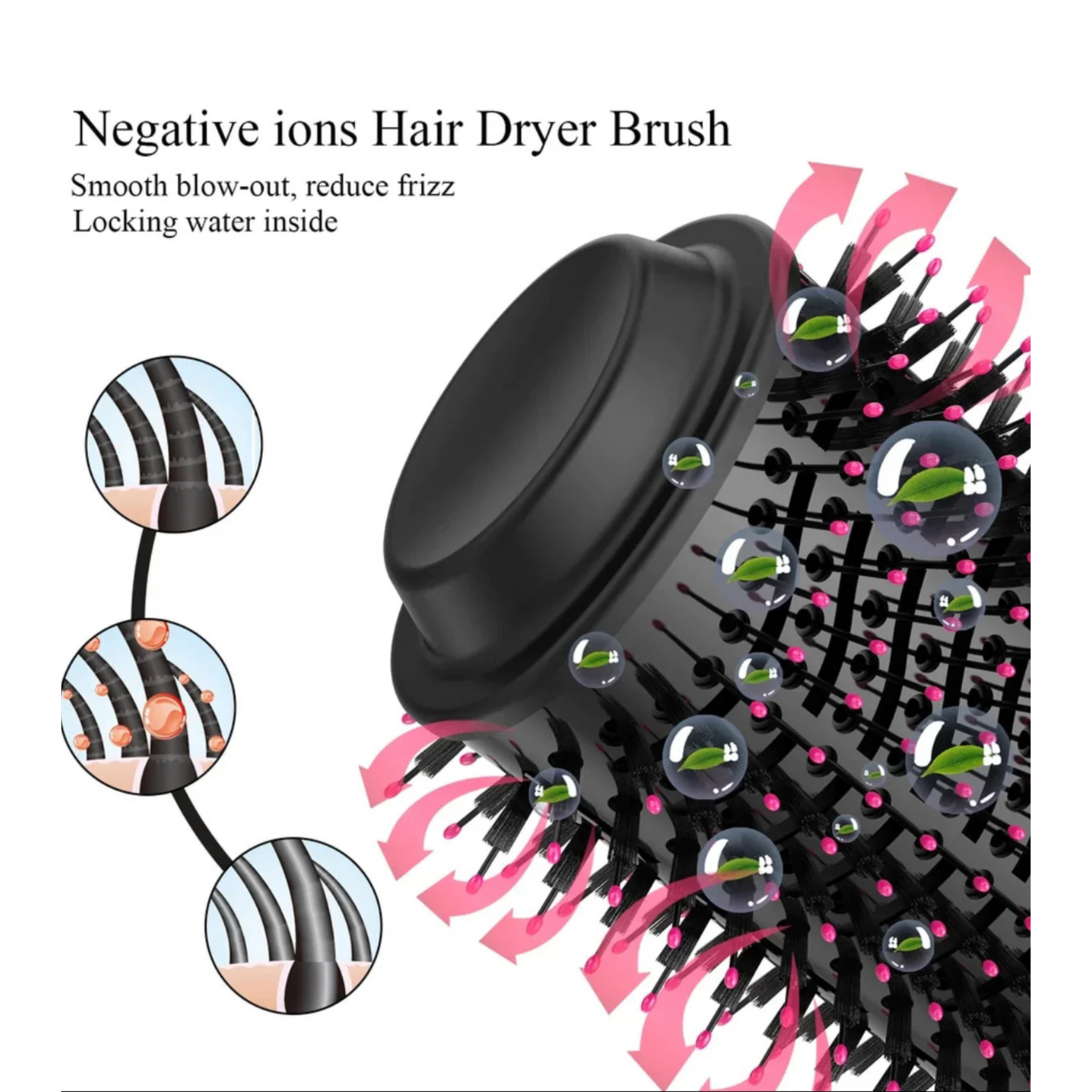 3-in-1 Hot Air Hair Dryer Brush – Product Description All-in-One Styling Tool: Combines a hair dryer, straightener, curler, and volumizer in one device for versatile hair styling. Suitable for All Hair Types: Features adjustable heat settings to safely style all hair textures, from straight to curly. Fast Drying with Powerful Airflow: Quickly dries hair while styling, saving time and effort. Oval Brush with Tangle-Free Bristles: Designed to detangle hair gently, smooth strands, and add volume from the roots for a salon-like finish. Ergonomic and Lightweight Design: Comfortable grip and anti-slip handle make styling easy and convenient, ideal for travel. Durable and Reliable: Made with high-quality materials to ensure long-lasting performance. Perfect for Daily Use and Special Occasions: Suitable for everyday styling as well as creating looks for parties and events.